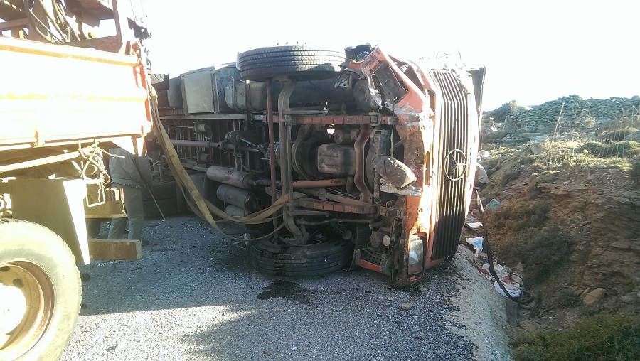 Σοβαρό ατύχημα φορτηγού εταιρείας συνεργαζόμενης με την ΔΕΗ στο Στενό