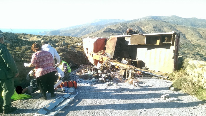 Στο φορτηγό επεβαιναν 6 εργαζόμενοι. Με την ανατροπή τραυματίστηκαν οι τρεις σοβαρά, ο ένας εκ των οποίων αρκετά σοβαρότερα. Οι άλλοι τρεις ελαφρότερα.