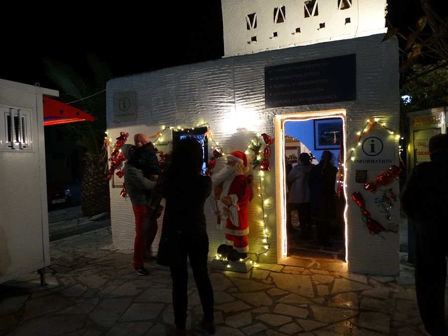Ήταν όντως λευκή η νύχτα της 12ης Δεκεμβρίου στην Χώρα. Ξεκίνησε από τις 20:00 με γιορτινό χρώμα μουσική και τραγούδια γύρω από το δέντρο που μας έστειλε το Λιμενικό Ταμείο και τα στολίδια που άπλωσε ο Δήμος Άνδρου παντού.