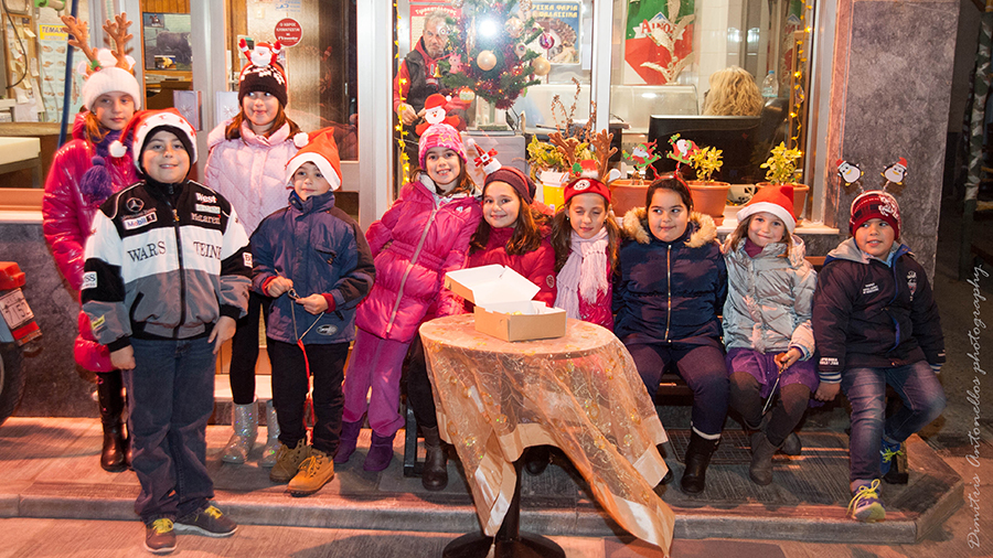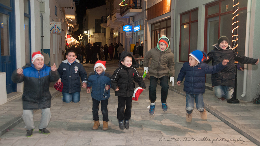 Ξαφνικά μέσα από το πλήθος, έκανε την εμφάνισή του ο Αη-Βασίλης, μονοπωλώντας το ενδιαφέρον των παιδιών και γεμίζοντάς τα με χαμόγελα χαράς. Όλα τα παιδιά έτρεξαν να φωτογραφηθούν μαζί του και να τα κεράσει γλυκά, που μετέφερε στο σάκο του. Τα πυροτεχνήματα, που ακολούθησαν, πραγματικά απογείωσαν τη διάθεση, γεμίζοντας με χρώματα τον ουρανό και τα πρόσωπα όλων.