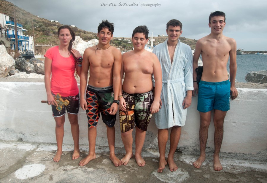 Αυτό δεν πτόησε τους 5 θαρραλέους νέους που βούτηξαν για τον σταυρό. Ήταν ο Γιώργος, ο Μιχάλης, ο Βίκτωρας, ο Δημήτρης και η Κάτια. Αθλητές θαλασσίων σπορ οι περισσότεροι, συνηθισμένοι στις θερμοκρασίες αυτές, δεν φάνηκαν να ενοχλούνται από την ψυχρολουσία.