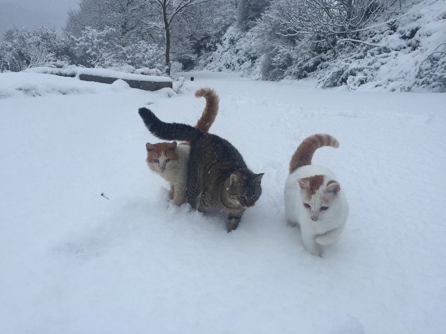Οι γάτες της Μονής Παναχράντου προσπαθούν να καταλάβουν τι τρέχει...