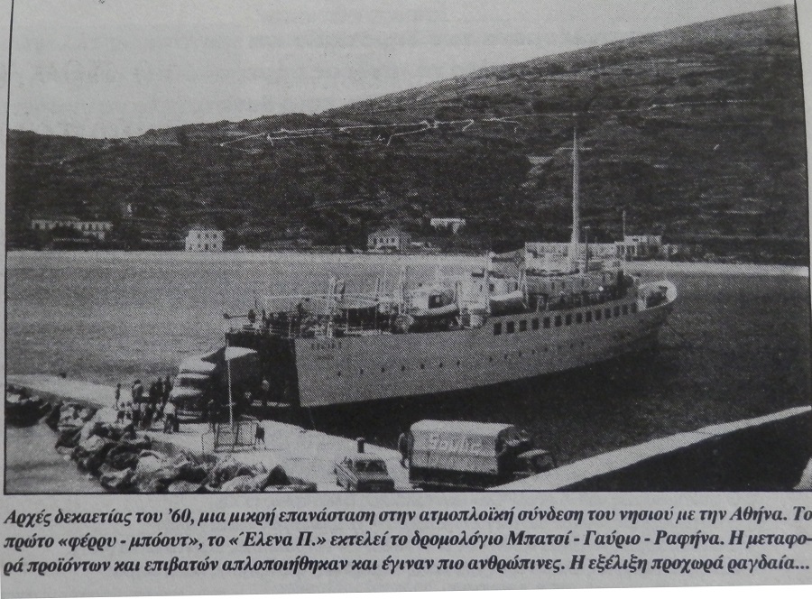 Συγχαρητήρια κε Μπασαντή.Μας θυμίσατε πολλά πάρα πολλά!Εξίσου μας θύμισε πολλά πάρα πολλά ο επισκέπτης σας ''ΓΑΥΡΙΩΤΗΣ ΤΑΞΙΔΙΩΤΗΣ'' με την αναφορά του στο αείμνηστο καπτά Γιώργη Λυγίζο απο το Γαύριο, που ήταν ο πράκτορας του νησιού μας απο το 1955 αν δεν κάνω λάθος με το ΚΩΣΤΑΚΗΣ και τα υπόλοιπα του Τόγια και αυτός που έφερε στην Ανδρο το ΕΛΕΝΑ.Π και μετέπειτα τον Στρίντζη.Ο καπτά Μάκης Στρίντζης σίγουρα θα έχει πολλά να πεί για αυτόν !