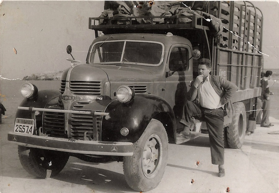 Ο Μαρίνος Γκιβίσης μπροστά από το φορτηγό του στολιμάνι της Ραφήνας. Φωτογραφία της Αργυρώς Γκιβίση.