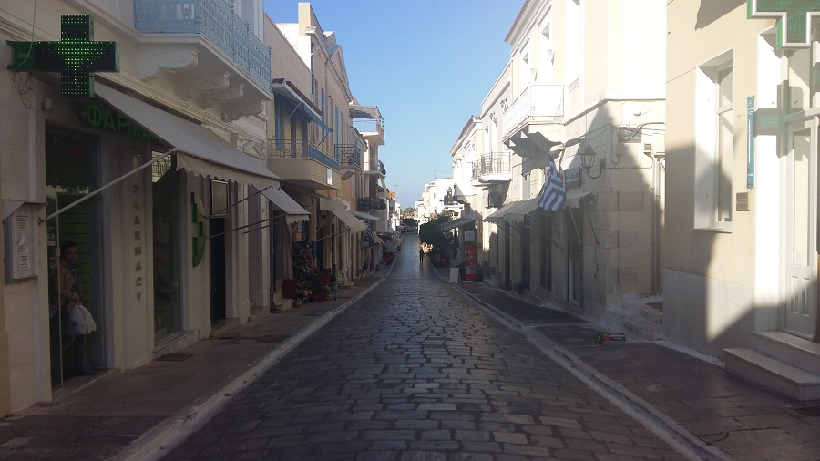 Κλασική εικόνα μιας καθημερινής στην αγορά της Χώρας όταν λείπει η κοινωνία των ανδριωτών πουπηγαινοέρχονται...