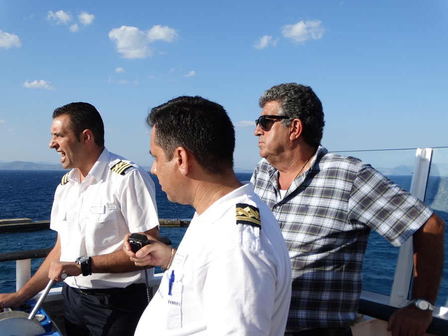 Το Superferry II φτάνει μια ώρα πριν τον αγιασμό του νέου πλοίου στη Ραφήνα. Δύο νέα πρόσωπα στην βαρδιόλα. Στο κουμάντο ο καπετάν Θανάσης, δίπλα του ο καπετάν Παύλος και πίσω τους διακριτικός ο παλαίμαχος καπετάν Γιαννούλης. Τρεις ανδριώτες πλοίαρχοι. Μετά από κάθε εντολή του καπετάν Θανάση ένα διακριτικό χαμόγελο επιδοκιμασίας του παλαίμαχου Στενιώτη καπετάνιου. (φωτο - Εν Άνδρω).