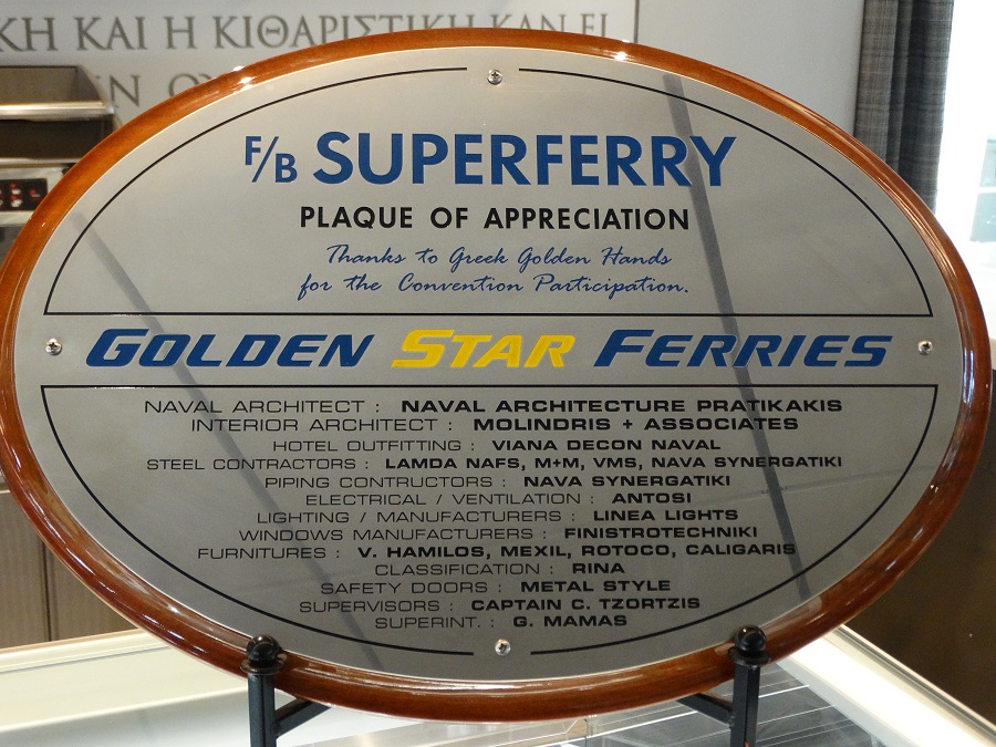 Αναμνηστική πλακέτα με τους βασικούς συνεργάτες που δούλεψαν στην μετασκεύη. Τα ελληνικά χρυσά χέρια όπως λέει και η αγγλική αφιέρωση στην πλακέτα (φωτο: Εν Άνδρω)