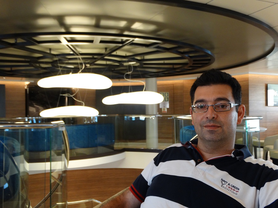 Πρώτος-πρώτος ο ναυπηγός Γιώργος Πρατικάκης το γραφείο του οποίου είχε την ευθύνη από την αγορά μέχρι την ολοκλήρωση της μετασκευής του πλοίου. Δηλαδή πάνω από έναν χρόνο. Εδώ την επόμενη μέρα είναι πάλι μέσα στο πλοίο ελέγχοντας τις τελευταίες λεπτομέρεις. Να στερεωθεί καλύτερα ένα διαχωριστικό, να ελεγθούν τα φωτιστικά, να μπουν στη θέση τους όσα δεν πρόλαβαν... (φωτο: Εν Άνδρω).