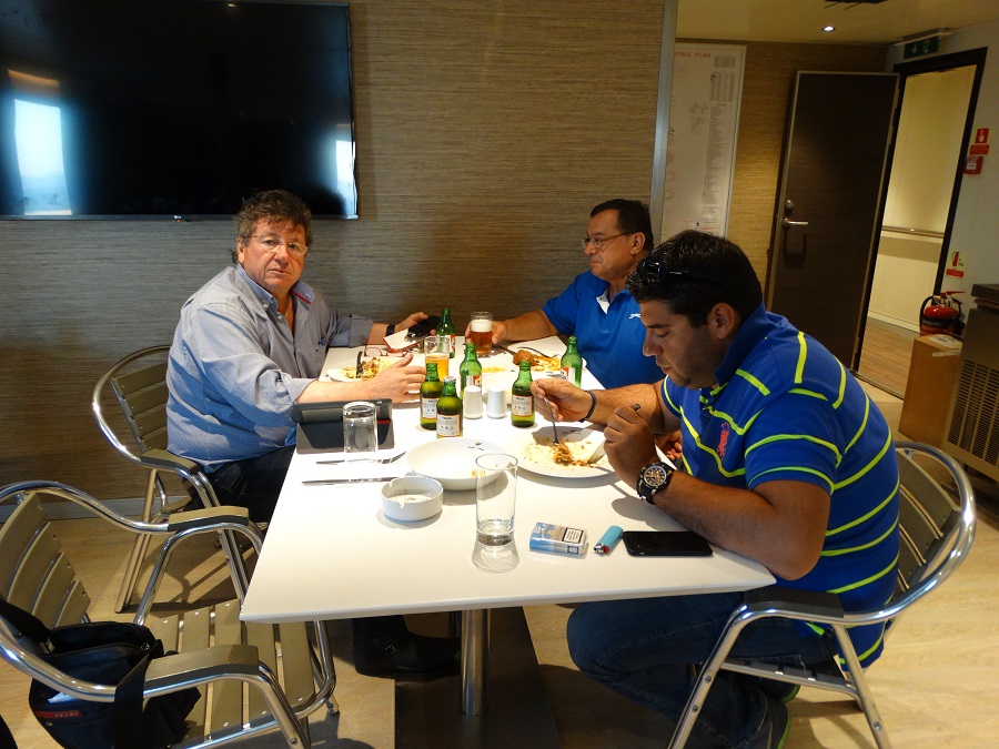 Όχι δεν ειναι ταπετσαρία. Είναι ο Γ, Στεφάνου ακόμα στο πλοίο! Στην τραπεζαρία του πληρώματος επτά η ώρα το βράδυ της επομένης και δεν έχει φύγει ακόμα από το βαπόρι επιβλέποντας τις λεπτομέρειες. Δεν γίνεται εύκολα η προκοπή όπως νομίζουν κάποιοι... προκομένοι! (φωτο: Εν Άνδρω).