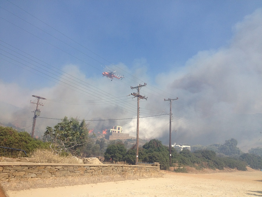 ΠΑΡΑΣΚΕΥΗ, 8/7/2016, ΩΡΑ 17:00 Η φωτιά στον Φελλό έχει πάρει ανεξέλεγκτες διαστάσεις. Περνά μέσα από σπίτια. Επί τόπου δρουν συνεχώς δύο καναντέρ και ένα ελικόπτερο. Υπάρχουν 15 πυροισβεστικά οχήματα της πυροσβεστικής και του ΣΕΔΑ. Έρχονται ενισχύσεις από Ραφήνα και Σύρο. Οι πυροσβέστες και οι εθελοντές δίνουν μια άνιση μάχη καθώς ο άνεμος πνέει ισχυρός γύρω στα 7 μποφώρ. Τα πράγματα είναι πολύ δύσκολα.