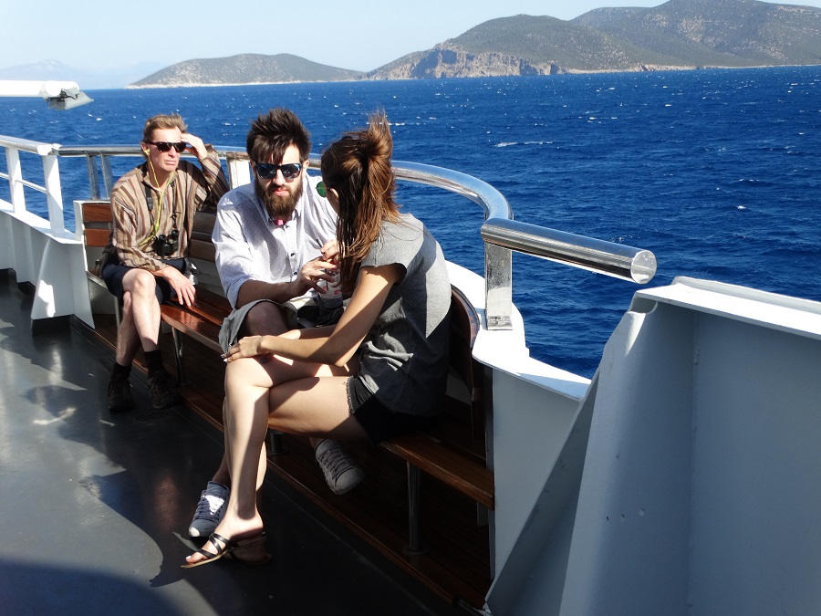 Κι ένας αντίστοιχος πάγκος στην άλλη μεριά του πλοίου κάνει το ταξίδι των νέων μια μοναδική φυγή στο Αιγαίο... (φωτο: Εν Άνδρω).