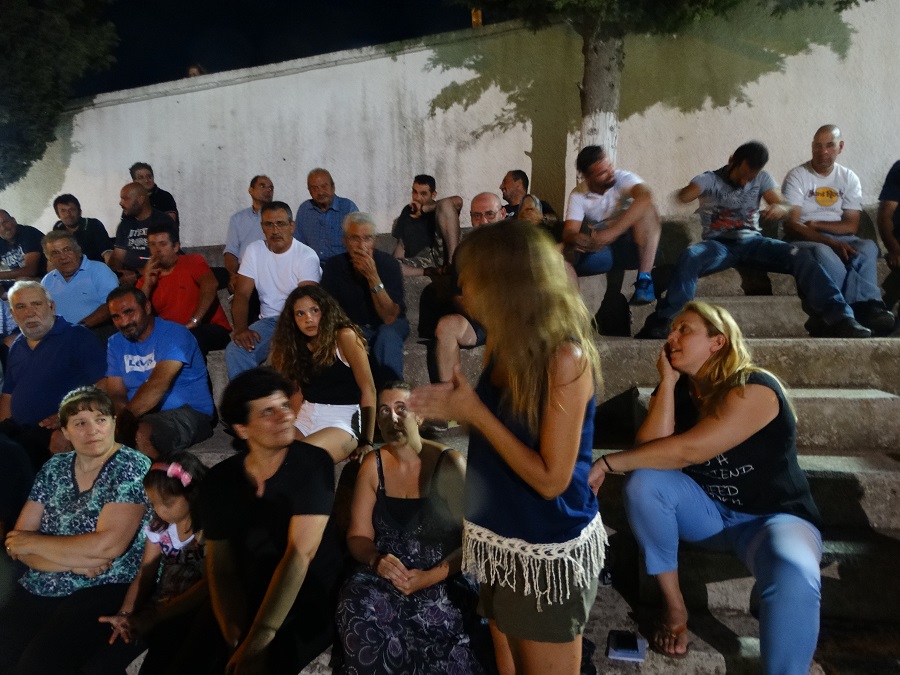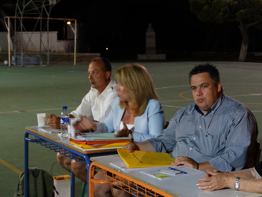 Οι κάτοικοι επιχειρηματολόγούν κόσμια και με επιχειρήματα πολιτικά και ηθικά με τον κ. Πολίτη που αντιπαρατάσει νομικισμούς. Το νόμιμο και το ηθικό, αιώνιο ερώτημα από την Αντιγόνη μέχρι σήμερα... (φωτο: Εν Άνδρω).