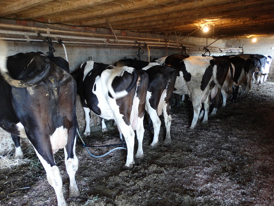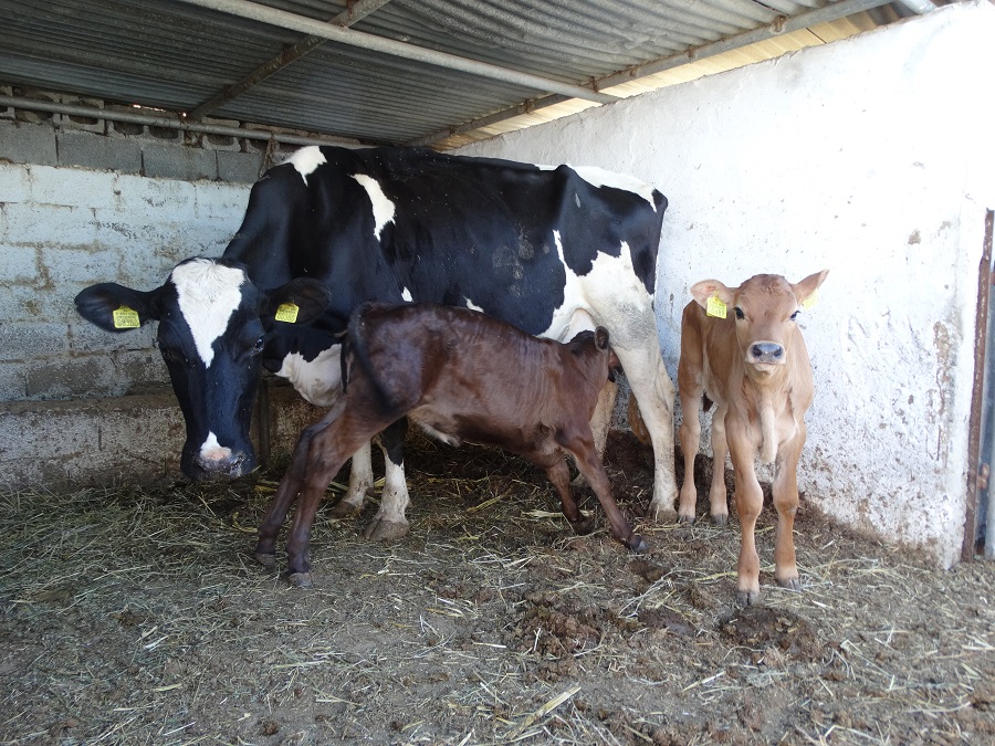 Πάνω οι αγελάδες αρμέγονται μηχανικά στον στάβλο, ακολουθεί ο χώρος που μαζεύεται αυτόματα το γάλα. Από κάτω αγελάδα θηλάζει τα δύο δέκα ημερών νεογέννητα μοσχαράκια της και τέλος μοσχάρια σε περιφραγμένο χώρο στο βουνό (φωτο΅Εν Άνδρω).