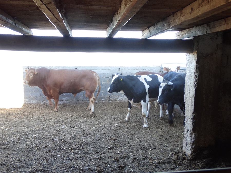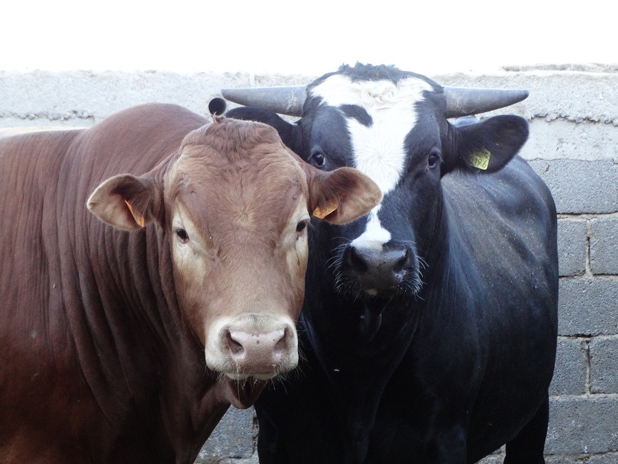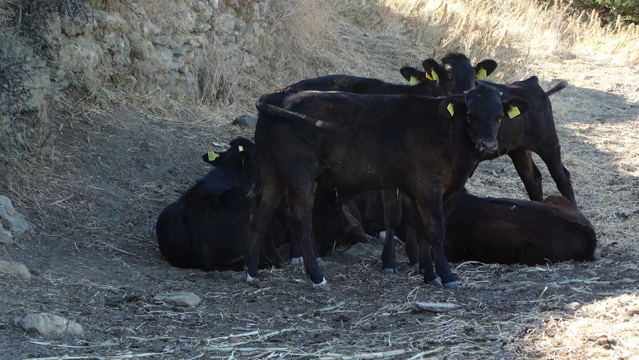 Οι ταύροι στον σταβλο. Οι περισσότεροι είναι ταύροι κρεατοπαραγωγής. Ένας (ξεχωρίζει από τα μαυρόασπρα χρώματα) είναι γαλακτοπαραγωγής (φωτο: Εν Άνδρω).