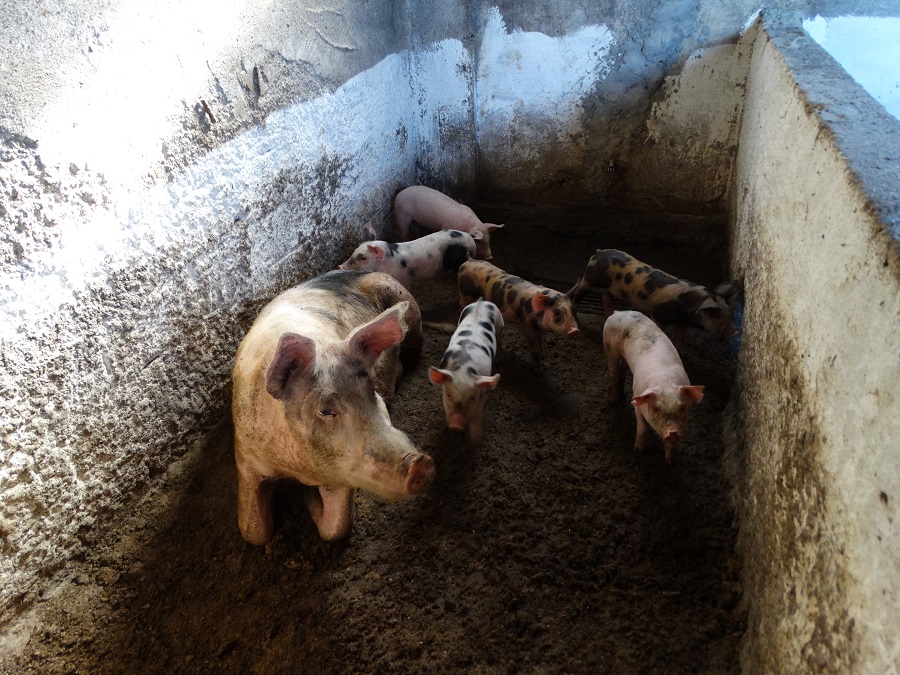 Οι δύο φωτογραφίες δείχνουν χοιρομητέρες με τα μικρά τους. Η τρίτη κοτέτσι με κοκόρια (φωτο: Εν Άνδρω)