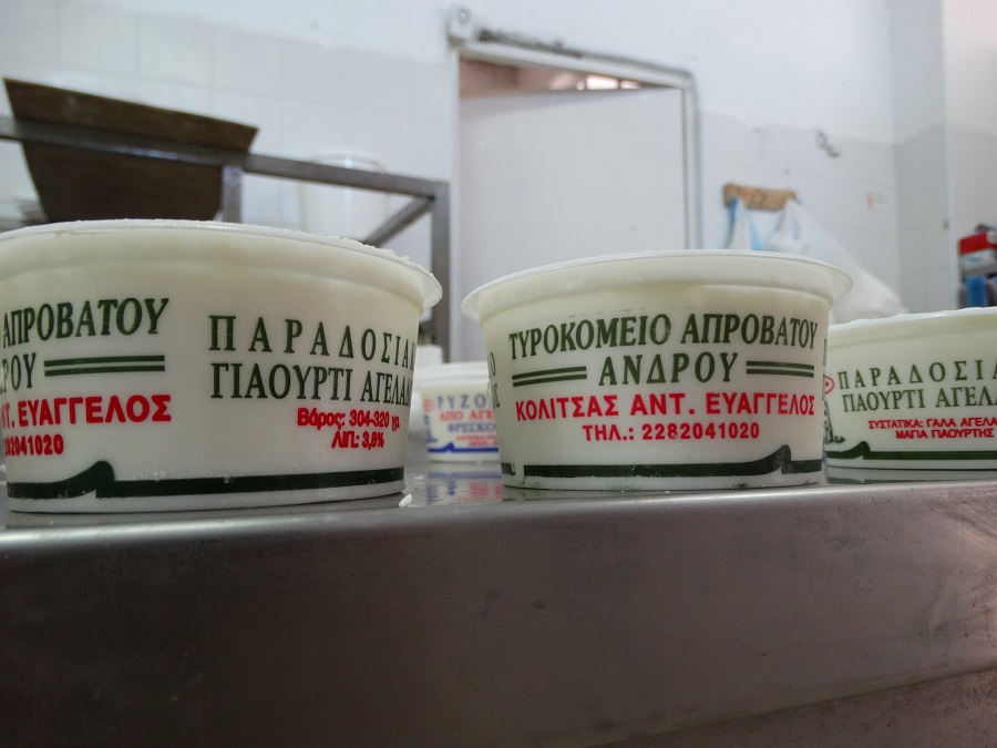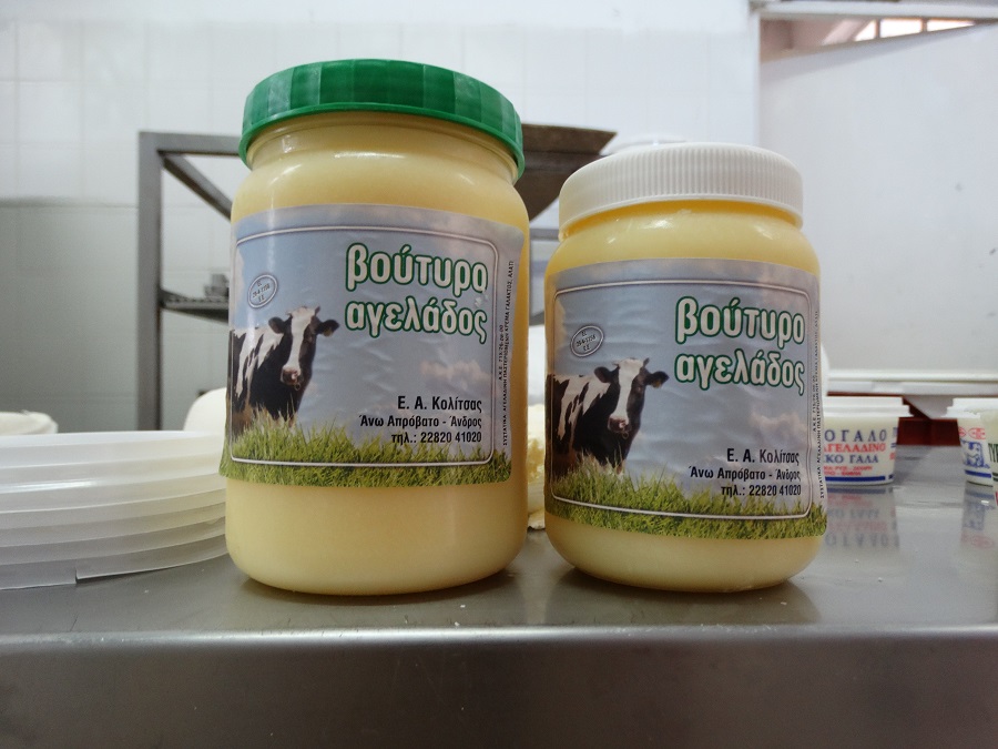 Πάνω βούτυρο αγελάδος. Κάτω ρυζόγαλο και πιο κάτω παραδοσιακό γιαούρτι (φωτο: Εν Άνδρω).