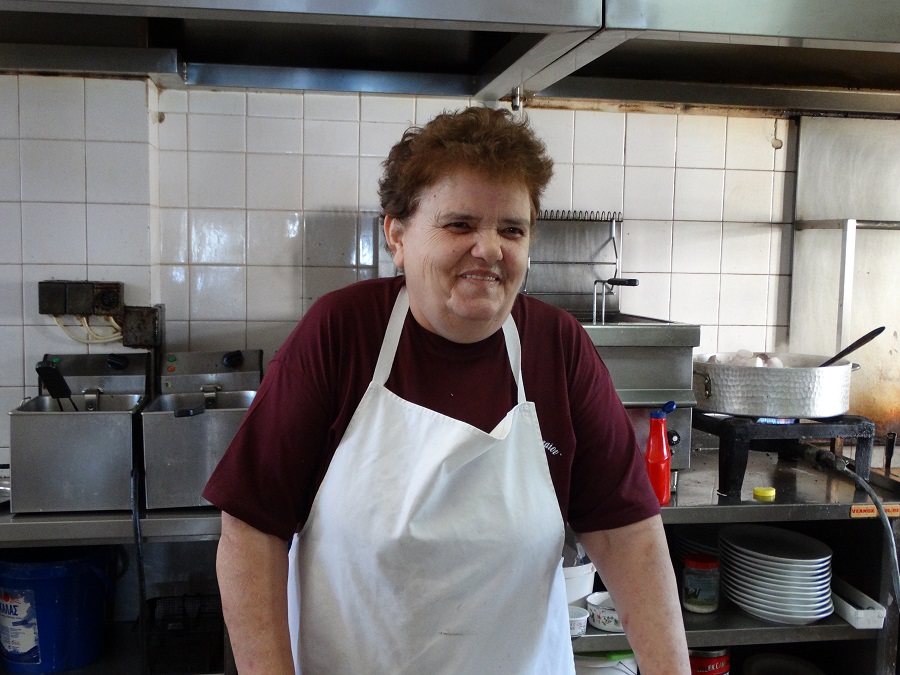 Η σύζυγος του κυρ-Αντώνη στην κουζίνα της οικογενειακής ταβέρνας στο Απροβάτου (φωτο: Εν Άνδρω)