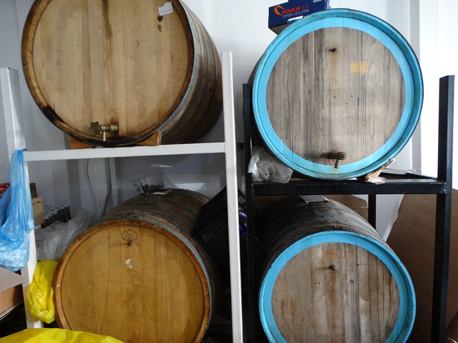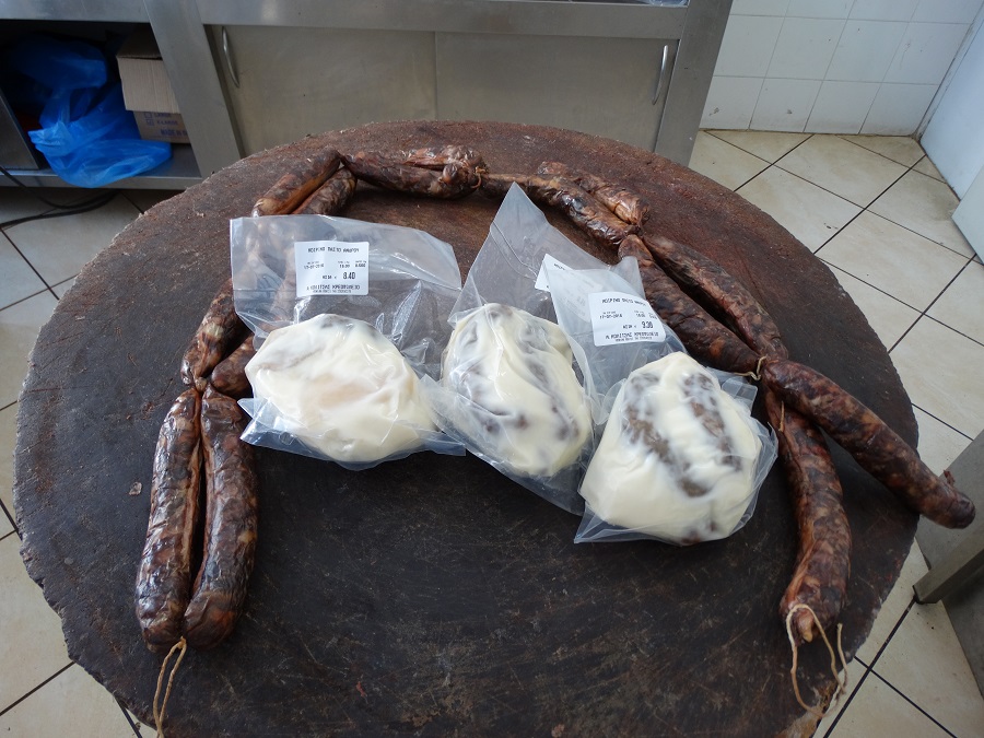 Ζαρζαβατικά, κρασί, λουκάνικα με γλύνα και λουκάνικά καπνιστά στο πρατήριο στο Μπατσί (φωτο: Εν Άνδρω).
