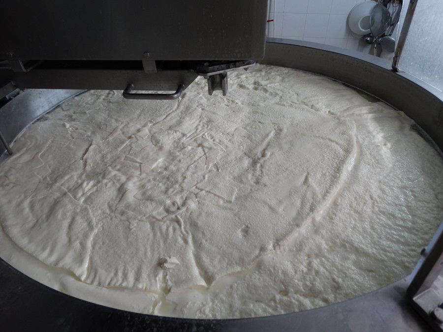 Μαλακό τυρί έτοιμο στο δοχείο πήξης προς συσκευασία (φωτο: Εν Άνδρω).