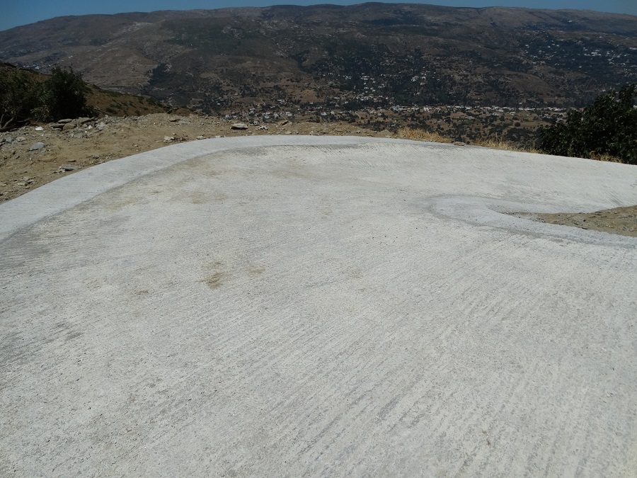 Στο σημείο αυτό ο δρόμος διαπλατύνθηκε 40cm και από 4 μέτρα έγινε 4.40. Σαφέστατα έστω αυτοί αυτοί 40 πόντοι δίνουν την δυνατότητα να διασταυρωθούν δύο αυτοκίνητα. Επιπλέον η διαμόρφωση με μπετό του αυλακιού για τα νερά με ελαφρά κλίση καθιστά την όποια δυσκολία λιγότερο επκίνδυνη για το αυτοκίνητο και τον οδηγό (φωτο: Εν Άνδρω).