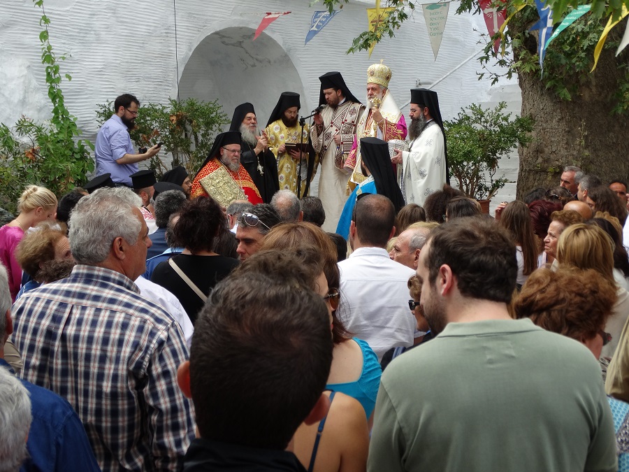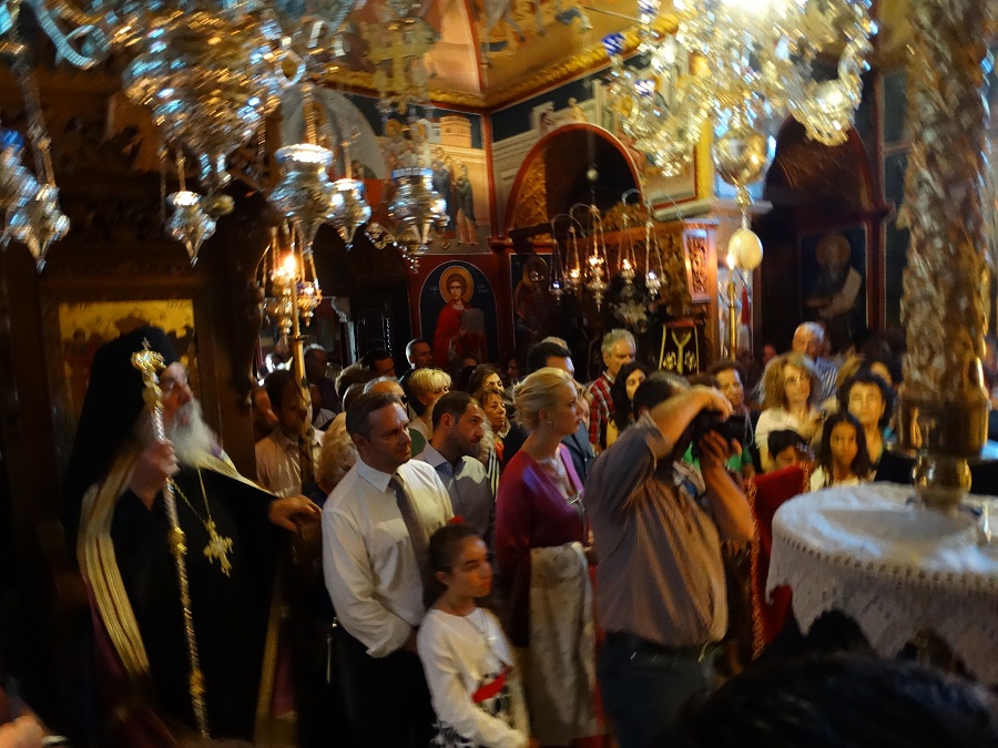 Πολύς ο κόσμος μέσα στην εκκλησία όπου υπηρχε το αδιαχώρητο. Διακρίνονται ο ηγούμενος Ευδόκιμος, ο αντιδήμαρχος Χ. Βουραζέρης, η πολιτευτής Κ. Μονογιού και ο πανταχού παρών φωτογράφος Κώστας Σαρρής επί το έργο (φωτο: Εν Άνδρω).
