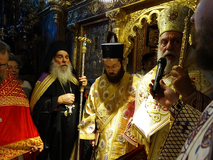 ¨Εκείνο που έκανε την φετινή γιορτή ξεχωριστή ήταν η χειροτονία του νέου μοναχού Ευδόκιμου σε διάκο από τον μητροπολίτη Δωρόθεο ΙΙ. Ήταν μια ιδιαίτερη στιγμή για την Μονή αυτή η χειροτονία. Και για τον λόγο αυτό και ο κόσμος ήταν πολύς και οι στιγμές διαφορετικές. Στην φωτογραφία στιγμιότυπο από την χειροτονία: ο γέροντας Ευδόκιμος, ο νεαρός Ευδόκιμος και ο μητροπολίτης Δωρόθεος ΙΙ (φωτο: Εν Άνδρω).