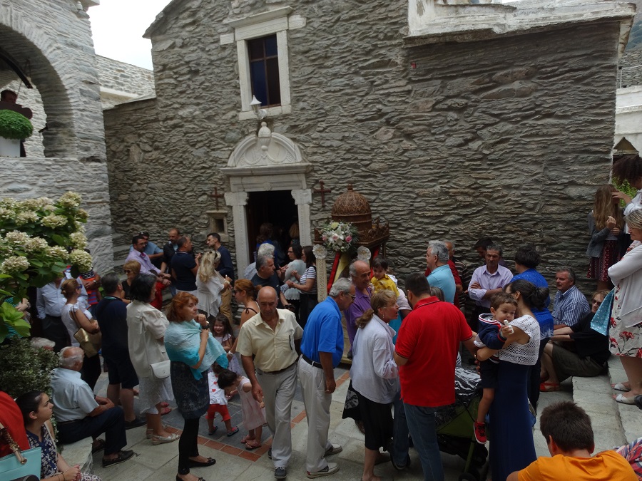 Ακόμα μια χρονιά ήταν πολύς ο κόσμος που ανέβηκε στην Πανάχραντο για την γιορτή του Αγίου Παντεεήμονα. Αναμενόμενο. Είναι μια από τις μεγάλες γιορτές του καλοκαιριού, μαζί με της Αγίας Μαρίνας και του Δεκαπενταύγουστου. Εδώ δύο φωτογραφίες με τον κόσμος στο προαύλιο της Μονής που ακούει τον επίσκοπο (Φωτο΅Εν Άνδρω).
