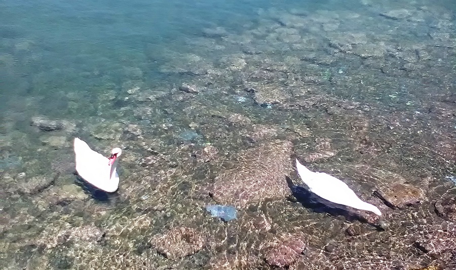 Υ.Γ. Παρόμοια ιστορία υπήρξε και στο Γαύριο. Και εκεί οι κύκνοι ήταν τρεις. Ο μόνος έφυγε ή χάθηκε. Τώρα έχει μείνει το ζευγάρι που εξοικειωμένο παίζει ακόμα και με τα πλοία που μπανοβγαίνουν...