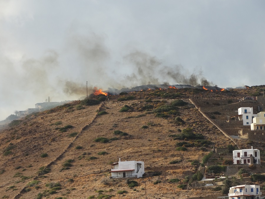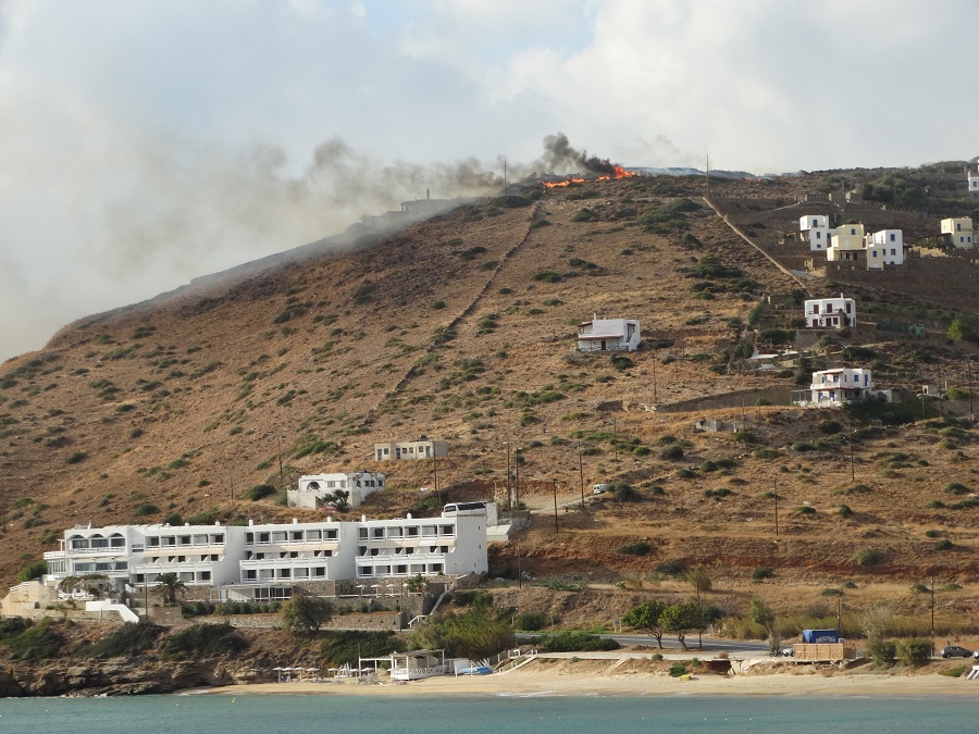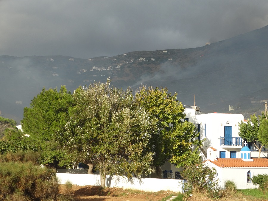 Και οι προσπάθειες ήταν πολλές. Οι πυροσβέστες έσωσαν ένα-ένα τα σπίτια κι έβγαζαν τους ανθρώπους από αυτά. Αλλά δεν μπορούσαν να γίνουν πολλά για το πράσινο μιας και τα δύο αεροπλάνα που ήρθαν δεν μπόρεσαν να κάνουν τίποτα με ανέμους 8 μποφόρ! Οι επίγειες δυνάμεις ήρθαν το αργά το απόγευμα από τις Κυκλάδες με το πλοίο και πεζοπόρο τμήμα με ελικόπτερο. Και το απόβραδο ήρθαν σοβαρές ενισχύσεις από την Αθήνα (με δωρεάν μετακίνηση της εταιρείας Fast Ferries ήρθαν 11 πυροσβεστικά οχήματα και 50 άνδρες) Όμως το μόνο που θα κάνουν είναι φύλαξη των καμένων, θα επιχειρήσουν στο Άνω Άγιο Πέτρο και θα σβήσουν τις ελιές που ακόμα αργοκαίγονται.