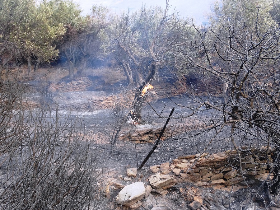 Ελιές που καίγονται στον Κάτω Άγιο Π¨ετρο (φωτ. Εν Άνδρω).