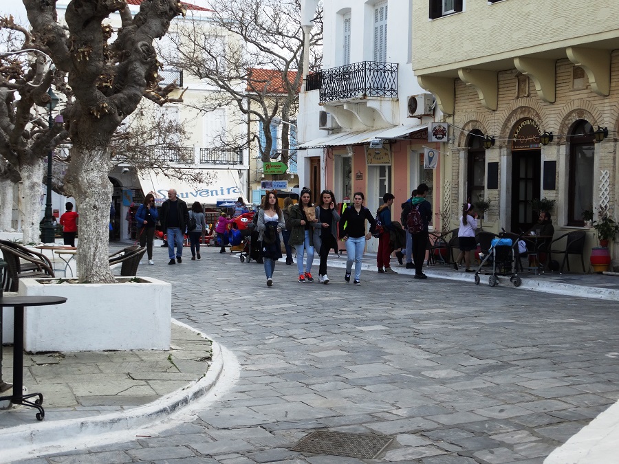 Βγήκαν οι μόνιμοι στην αγορά βγήκαν και οι επισκέπτες και γέμισε κάπως ο πεζόδρομος της Χώρας (φωτ. Εν Άνδρω).