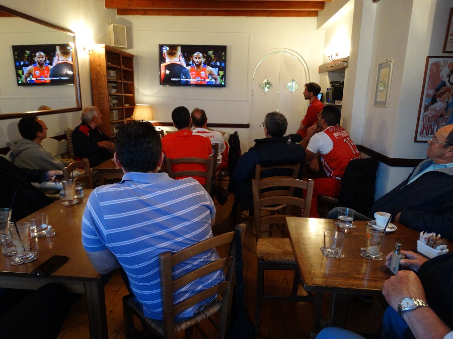 Μια μεγάλη παρέα Ελλήνων βλέπει τον αγώνα... (φωτ. Εν Άνδρω).