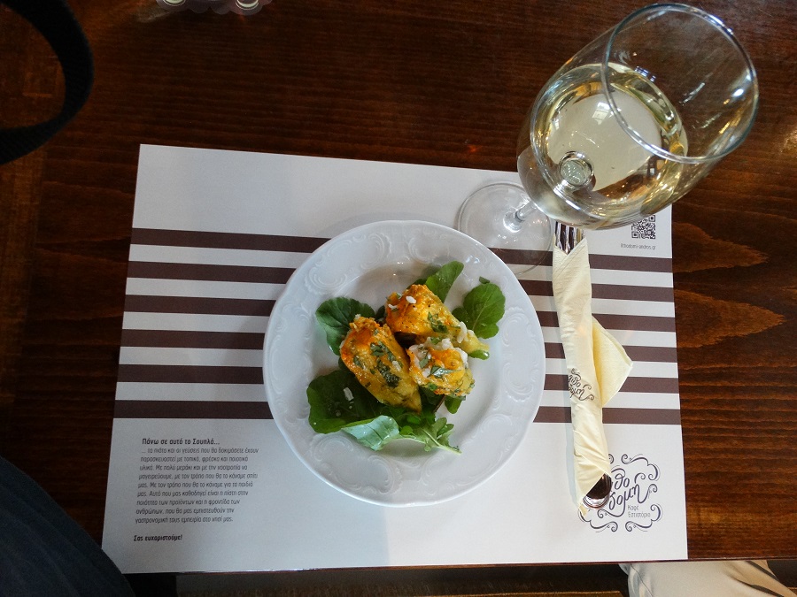 Και λίγα ντόπια κολοκυθάκια γεμιστά με ρύζι. Μαζί κι ένα ποτήρι λευκό κρασί. Η ζωή είναι ωραία, όπως έλεγε κι εκείνο το παλιό ιταλικό φιλμ με τον Μπενίνι... (φωτ. Εν Άνδρω).
