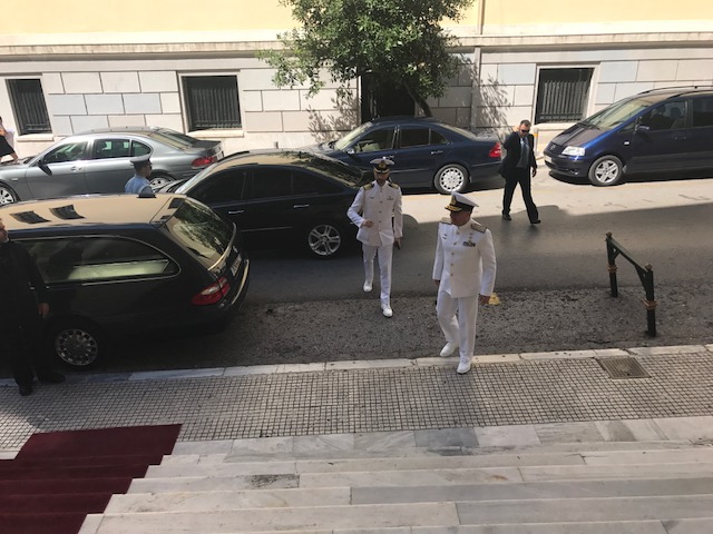 Ο αρχηγός του Πολεμικού Ναυτικού προσέρχεται στην εκκλησία (φωτ. Εν Άνδρω).