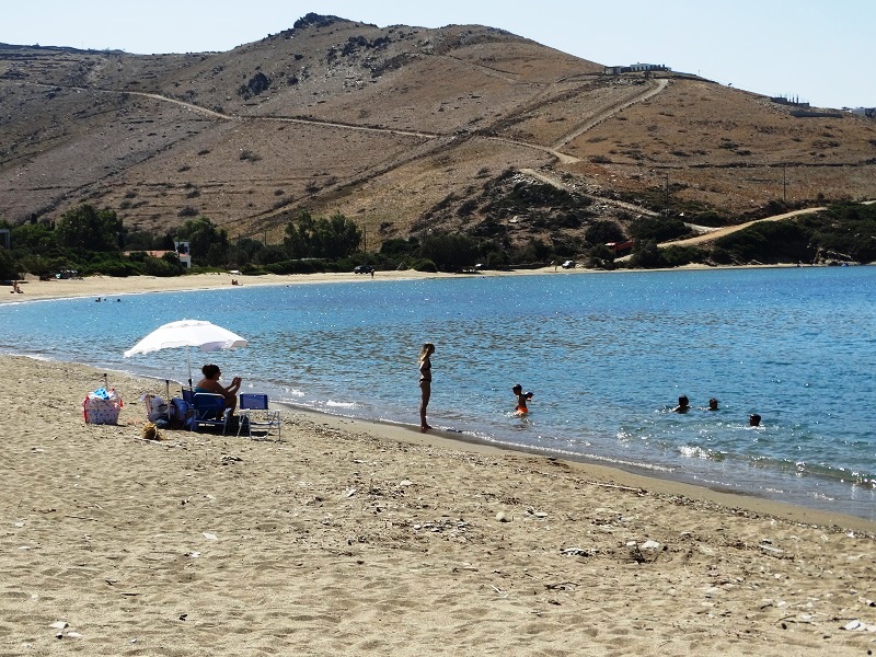Μερικές οικογένειες αψηφούσαν τον ήλιο κάτω από τις ομπρέλες τους. Μια προσεκτική ματιά και καταλάβαινες πως ήταν ευρωπαίοι που τους λείπει ο ήλιος. Μια ακόμα πιο προσεκτικότερη ματιά και έβλεπες πίσω από την καταπράσινη παραλία το σταχτογκρίζο από την τελευταία φωτιά. Η μητέρα-φύση δεν έχει προλάβει να επουλώσει τις πληγές που προκάλεσαν οι ανθρώποι. Όμως η παραλία και η θάλασσα με την ομορφιά τους τραβάνε πάλι την προσοχή... (φωτ. Εν Άνδρω).