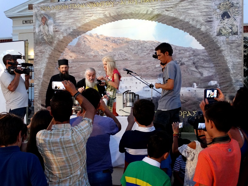 Μετά ανέλαβε ο πρωταγωνιστής του γεγονότος, ο χαρισματικός και επικοινωνιακός Γέροντας Ευδόκιμος και με τον δικό του μοναδικό τρόπο πήρε φόρα κι άρχισε να εξηγεί την φοβερή σκορδαλιά του! Μύρισε όλη η πλατεία σκόρδο!!! Η Μενεγάκη απλώς τον βοήθαγε στην παρουσίαση. (φωτ. Εν Άνδρω).