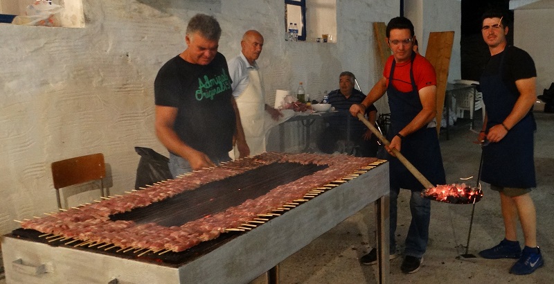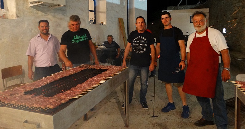 Επί το έργον. Με το φτυάρι τα αναμένα κάρβουνα και τα χιλιάδες σουβλάκια. Δυστυχώς δεν φωτογραφίσαμε κάτι λουκάνικα γίγαντες... (φωτ. Εν Άνδρω).