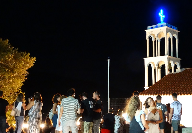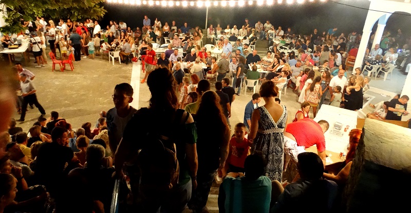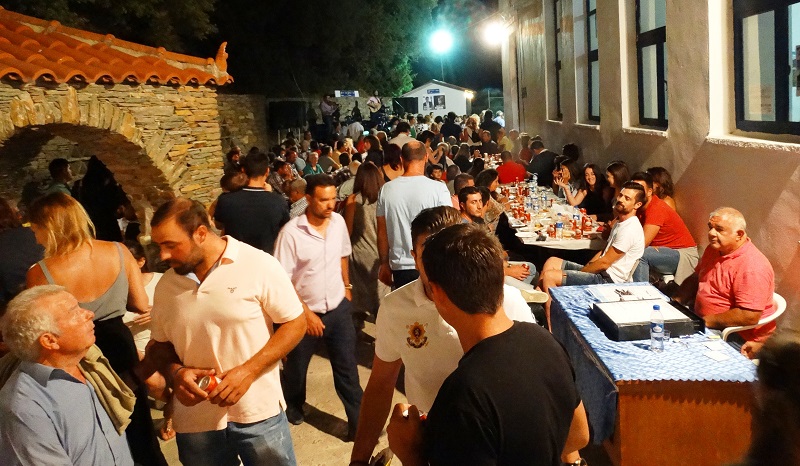 Εκεί στα προαύλια της εκκλησιάς και του παλιού σχολείου μαζεύονται όλοι. Να γιορτάσουν μια από τις πιο μεγάλες γιορτές του καλοκαιριού και το μεγαλύτερο πανηγύρι της Άνδρου. Μόνο τα παρκαρισμένα αυτοκίνητα ξεκίναγαν από την μια άκρη του χωριού, την πλατεία, όπου και το πανηγύρι, μέχρι την είσοδο του, από τον κεντρικό επαρχιακό δρόμο, που πάει στ’ Αποίκια και στην Χώρα: ένα χιλιόμετρο απόσταση!!! Και φυσικά κανείς δεν μέτρησε μηχανές και μηχανάκια με τα οποία έφτσαν πολλοί νεαροί...