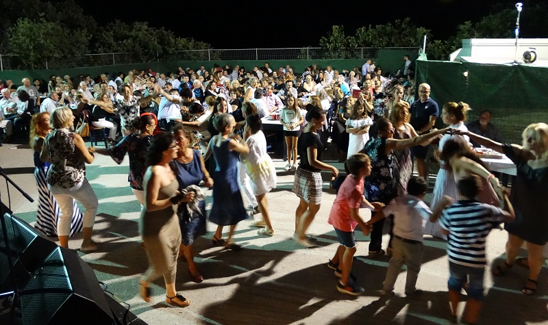 Έφαγαν, ήπιαν και χόρεψαν. Στο βάθος αριστερά της φωτογραφίας η ουρά του φαγητού!! Γύρω-γύρω όλοι τρώνε και πίνουν. Μπροστά οι νέοι που ακούνε. Και στη μέση όσοι χορεύουν... (φωτ. Εν Άνδρω).