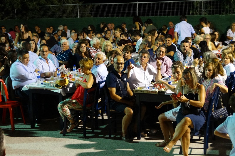 Στα δύο πρώτα τραπέζια πίστα ο έπαρχος και οι αδελφοί Στεφάνου χορηγοί και ομιλητές του χτεσινού πανηγυριού της Άρνης (φωτ. Εν Άνδρω).