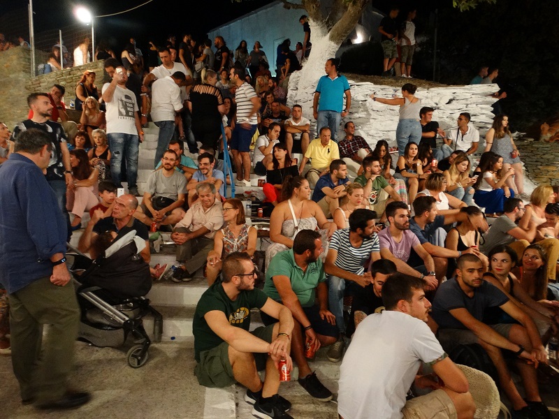 Μια τελευταία εικόνα. Μερικές δεκάδες νεαρές και νεαροί στην πλατεία τα λένε. Στα προαύλια εκείνη την ώρα δεν έπεφτε καρφίτσα. Χρόνια πολλά και του χρόνου παιδιά... (φωτ. Εν Άνδρω).