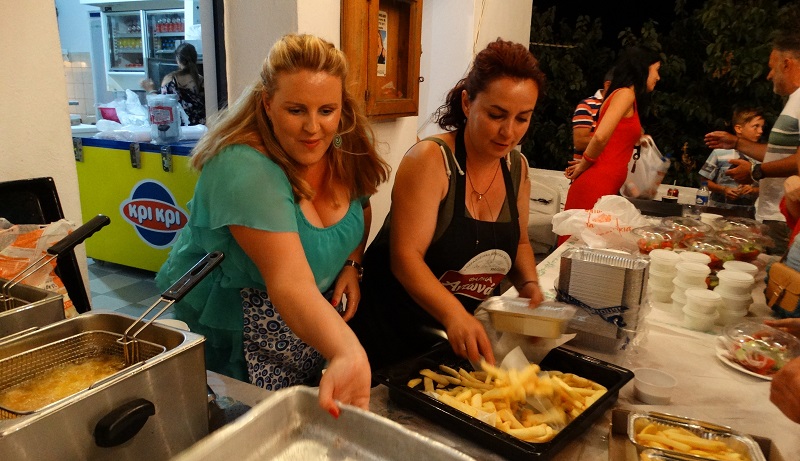 Και οι εθελόντριες επί το έργον. Η ντόπια πατάτα πήρε κι έδωσε χτες... (φωτ. Εν Άνδρω).