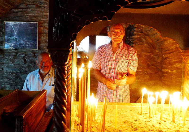 Δεκαπενταύγουστος στις Κυκλάδες. Δεκαπενταύγουστος στην Άνδρο. Δεκαπενταύγουστο με τον Ευδόκιμο στην Πανάχραντο. Μια στιγμή στον καλοκαιρινό ουρανό η σημερινή με την συντροφιά του γέροντα για λίγο εκεί ψηλά σους Γερακώνες. Μια μνήμη και μια επιστροφή. Ένας ακόμα κύκλος κλείνει. Ένα πέρασμα βιαστικό να σας θυμίσει το Εν Άνδρο μια μέρα που για τους πολλούς είναι μεγάλη και συμβολική και για άλλους μια αργια καλοκαιρινή... Καθένας ότι θέλει επιλεγει. Εδώ ο Ευδόκιμος μετά την λειτουργία... (φωτ. Εν Άνδρω).