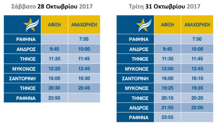 Με ανακοίνωση της η GoldenStarFerries ενημερώνει το επιβατικό κοινό ότι το Σάββατο 28 Οκτωβρίου και την Τρίτη 31 Οκτωβρίου το πλοίο SUPERFERRY II θα πραγματοποιήσει δύο έκτακτα δρομολόγια από και προς Σαντορίνη.