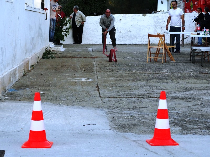 Και αφού έφαγαν και ήπιαν ήρθες η ώρα του παιχνιδιού. Απορείς: τι παιχνίδια μπορεί να παίζουν οι δασοπυροσβέστες; Με την φωτιά; Αποκλείεται. Με τα οχήματα; Δεν γίνεται. Με τις μάνικες!!! Αυτό είναι: παιχνίδι με τις μάνικες! Παίρνουν μια μάνικα άδεια και κουλουριασμένη. Βάζουν μακριά δύο κορίνες. Και μετά πετάνε τη μάνικα με τέχνη για να ξετυλιχτεί με την μια και να μην στριφογυρίσει. Έτσι ώστε να την συνδέσουν με την μια και να ρίξουν νερό.
