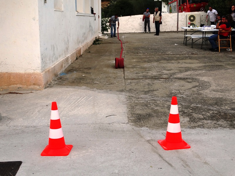 Τουτέστιν παίζουν εκπαιδευόμενοι. Με έπαθλο ένα ζευγάρι πυροσβεστικές μπότες. Ποιος τις πήρε ένα μικρός που την πρώτη φορά ξαστόχησε λίγο και μετά το πέτυχε. Κόντεψε να πετύχει κι εμάς καθώς φωτογραφίζαμε λίγο πιο πέρα από τις κορίνες.
