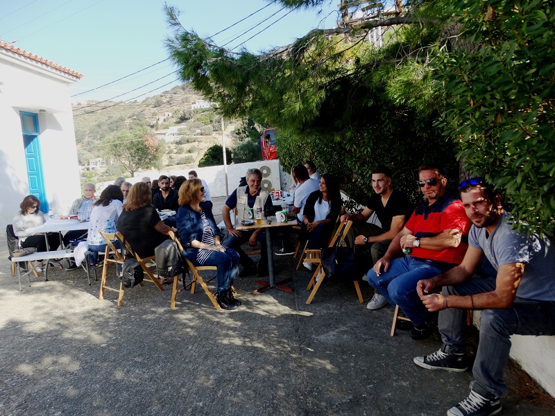 Κυριακή απομεσήμερο. Αν και Οκτώβρης η μέρα σχεδόν καλοκαιρινή. Η πρόσκληση του ΣΕΔΑ για γεύμα: σουβλάκι στα κάρβουνα με μπύρες!!! Έξω από το σχολείο των Λειβαδίων – όπου συστεγάζονται αρμονικά οι εθελοντές δασοπυροσβέστες του νησιού μας με τον τοπικό σύλλογο – παρκαρισμένο ένα μεγάλο πυροσβεστικό όχημα. Για να μην χαθεί κανείς!!!