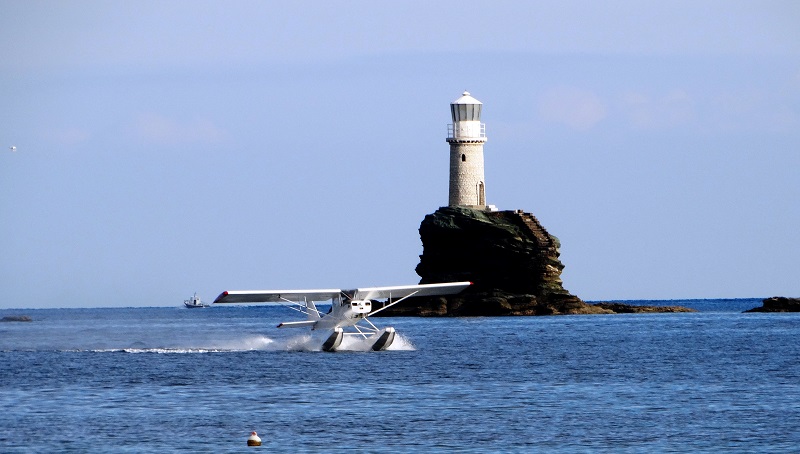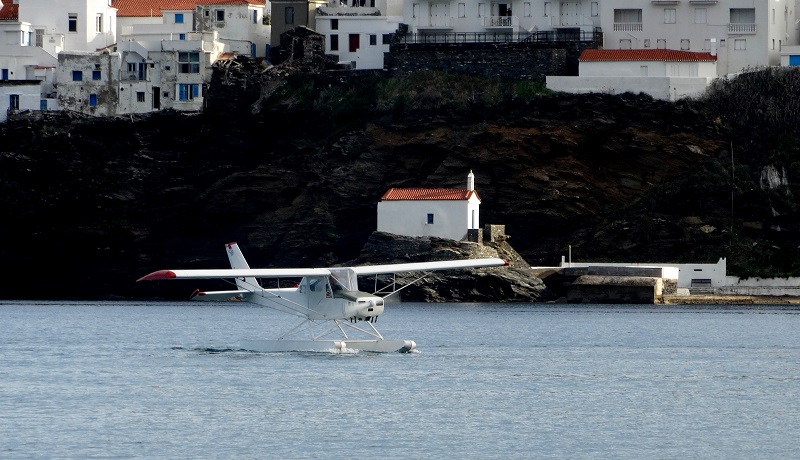 Και ξάφνου ένα βουερό άσπρο υδροπλάνο άρχισε να κάνει διαδρομές στο Νειμποριό!!! Από την Αγία Θαλασσινή μέχρι τον Τουρλίτη. Ήταν χάρμα να το βλέπεις μέσα στο ήσυχο απομεσημερο του Σαββάτου 25 Νοεμβρίου 2017. Επί αρκετή ώρα ο μηχανικός, πιλότος και ιδιοκατασκευαστής του υδροπλάνου Κώστας Λουκίσας έκανε αρκετές προσπάθειες να το αποθαλασσώσει. Δεν τα κατάφερε. Κατάφερε όμως να ενθουσιάσει όλους εμάς που τον παρακολουθούσαμε να φέρνει σε πέρας μια προσπάθεια χρόνων από την μέρα που ξεκίνησε να το φτιάχνει μέχρι προχθές που ξεκίνησε τις δοκιμές να ετάξει με αυτό στο Νειμποριό. Στη φωτογραφία του Εν Άνδρω ο Κάστας Λουκίσας σε έναν ελιγμό στη θάλασσα με φοντο τον υπέροχο φάρο της Χώρας.