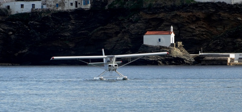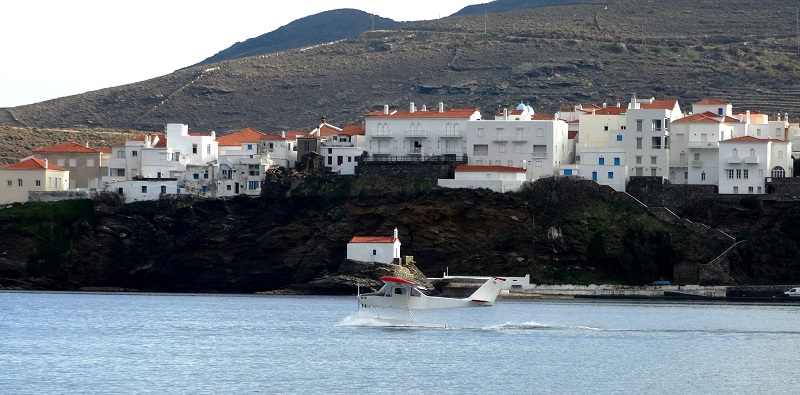 Μετά από μερικές προσπάθειες το υδροπλάνο ξεκίνησε πήγε μέχρι την Αγία Θαλασσινή να πάρει φόρα για να ξεκινήσει την προσπάθεια αποθαλάσσωσης (φωτ. Εν Άνδρω).
