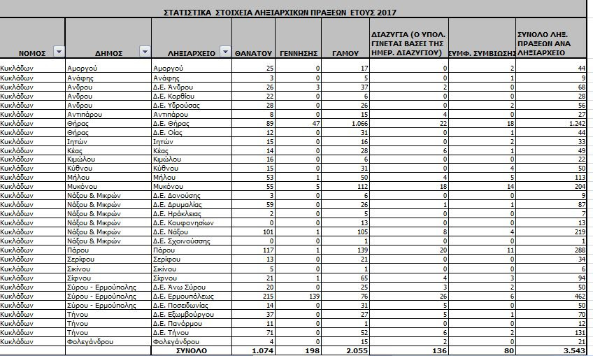 Τα στοιχεία μιλούν μόνα τους: η Ελλάδα μικραίνει, οι Κυκλάδες συρρικνώνονται, η Άνδρος ερημώνει! Τα δημογραφικά στοιχεία του υπουργείου Εσωτερικών για το 2017, που αφορούν την χώρα και εμάς είναι θλιβερά.